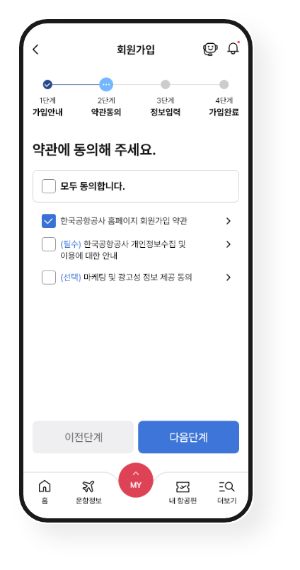 항공편 탑승 수속 이전 빠른 정보 확인이 가능한 내 항공편 등록 기능을 구축하였습니다.