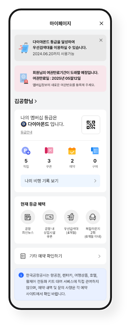 이를 통해 내 항공편과 관심 있는 항공편 정보를 쉽게 확인하고, 신분 확인 혼잡도