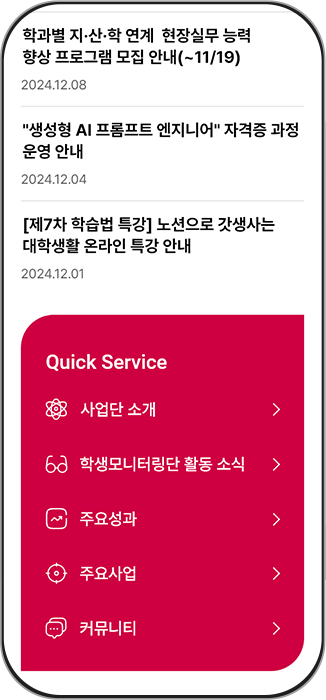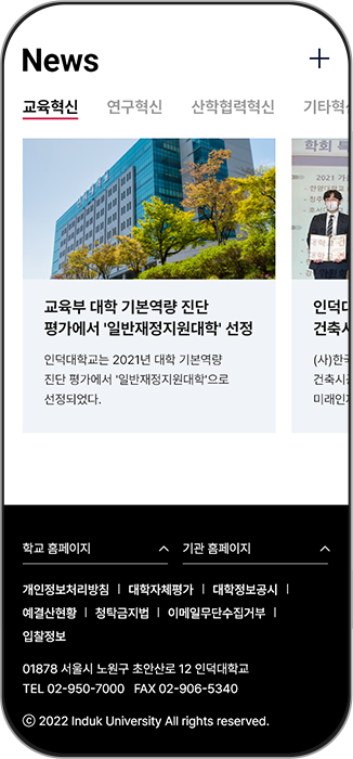 가독성과 접근성을 극대화 하였습니다. 대학의 정체성을 강조하는 동시에 사용자의 편의성을